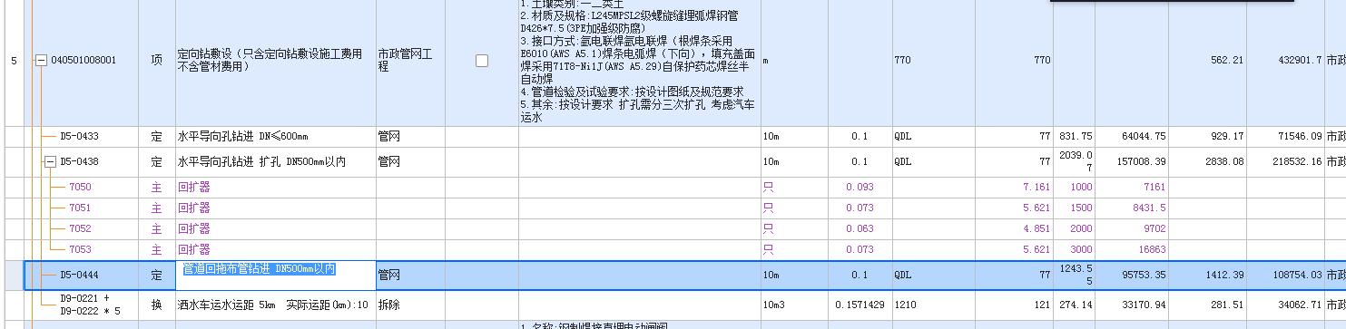 问题内容:您好 老师请问 水平定向钻D426*7.5焊接管道 1.水平导向孔是否应该执行DN≤600mm的定额 2.扩孔是否执行DN500规格 并且定额已经考虑多次扩孔 不需要多次记取 ,扩孔器主材费用为扩孔器的材料价格费用 3.回拖执行管道回拖布管钻进 DN500mm以内定额 即可