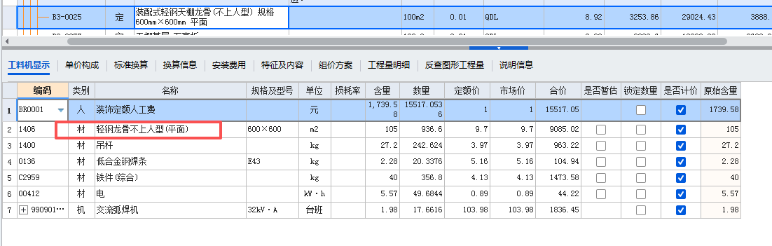 问题内容:老师请问吉林24建筑装饰定额中“B3-0025装配式轻钢天棚龙骨(不上人型) 规格 600mm×600mm 平面”定额中龙骨材料未注明龙骨规格型号,定额默认龙骨规格型号是什么如C60、C50、C38型轻钢龙骨?