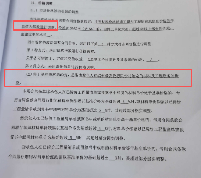 问题内容:合同签订,主要材料价格以施工期内工程所在地信息价格的平均值为基数进行调整,价差在5%以内(含5%)的,由施工单位承担:超过5%以上部分的价差,由建设单位承担; (2)关于基准价格的约定:是指由发包人在编制最高投标限价时给定的材料及工程设备的价 对于上述描述(可以详见附件) 问题一:是否应按照施工期内的材料的信息价平均值与最高投标限价材料价格做对比,如超过5%了,则按材料价格按施工期内的材料的信息价平均值调整。
