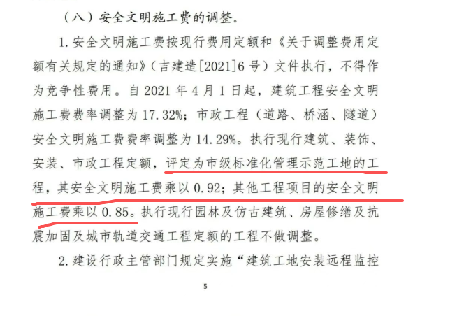 问题内容:老师你好,当以2024清单2024定额,做工程项目结算时,安全文明施工费费率是否按照吉建造站【2023】4号文中提到的,“评为市级示范工程,其安全文明施工费乘以0.92。其他工程项目的安全文明施工费乘以0.85”
