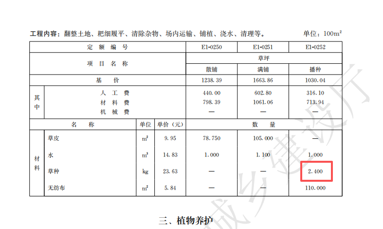 问题内容:老师您好24版园林绿化定额“ E1-0252播种”定额单位为100㎡,相应的草种数量为2.4kg。在园林绿化定额说明中没找到相应草种损耗率,请问老师该草种损耗率为多少?